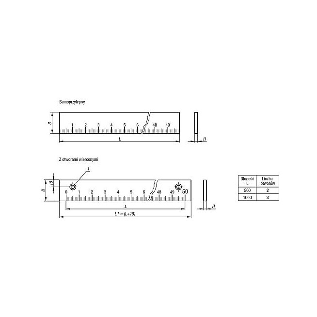 TASMA MIERNICZA POZIOMY SAMOPRZYLEPNY, FORMA:A PUNKT ZEROWY Z LEWEJ, SKALOWANIE OBUSTRONNE 1000X10, H=0,5,