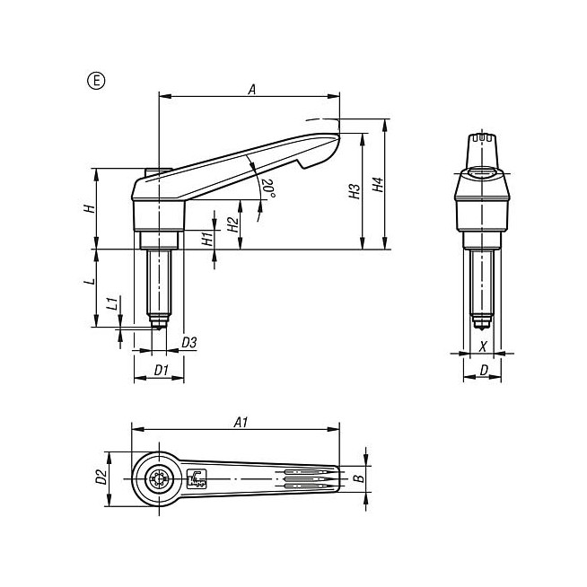 REKOJESC NASTAWNA Z TRZPIENIEM DOCISKOWYM RO.1 M05X20, FORMA:E TWORZYWO SZTUCZNE, CIEMNOSZARY RAL7021,