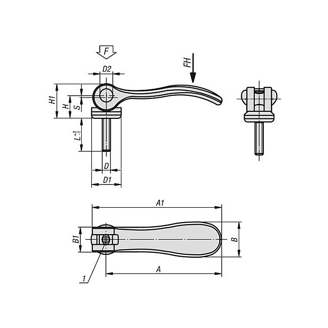 DZWIGNIA MIMOSRODOWA NASTAWNY RO.0 M04X15, A=52,3, B=18, STAL NIERDZEWNA PIASKOWANE, KOMP:STAL NIERDZEWNA