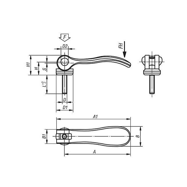 DZWIGNIA MIMOSRODOWA RO.1 M06X50, A=70,4, B=21,5, STAL NIERDZEWNA 1.4308 PIASKOWANE, KOMP:STAL NIERDZEWNA