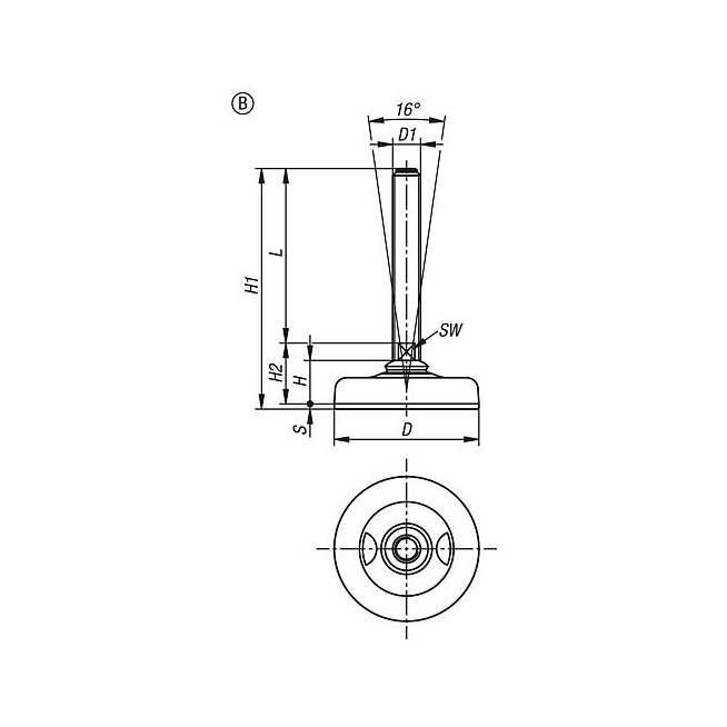 STOPKA, FORMA:B M16X200, D=103, POLIAMID NIEBIESKI RAL5005, KOMP:STAL NIERDZEWNA