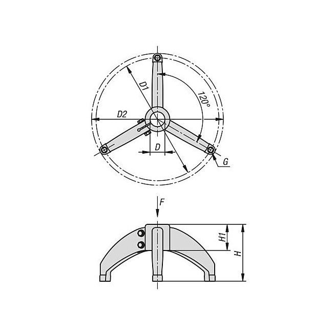 - Dociskacze szybkomocujące z czarnej stali, pionowe z przylgą poziomą i przestawnym wrzecionem dociskowym, forma B, średnie