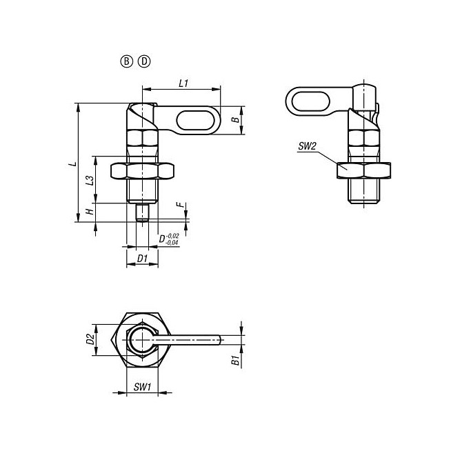 Trzpienie ustalające z uchwytem jednoskrzydełkowym, formy B i D
