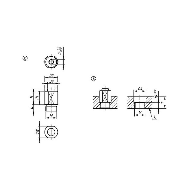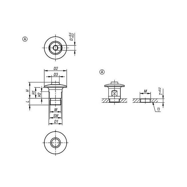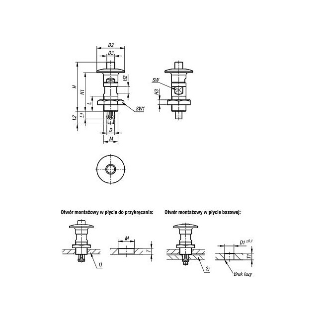 TRZPIEN MONTAZOWY Z UCHWYTEM GRZYBKOWYM, Z MAGNETYCZNĄ BLOKADĄ JED RO.2, D1=8 L=15, STAL NIERDZEWNA,