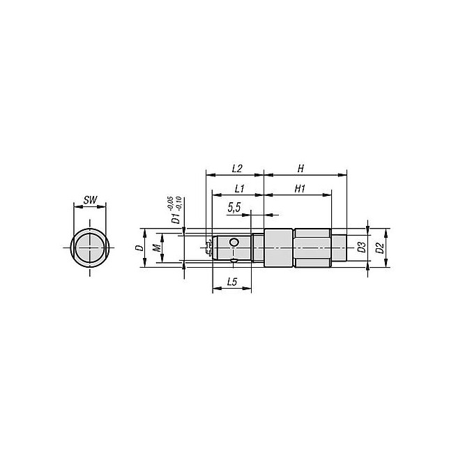 - Trzpienie ustalające ze stali lub stali nierdzewnej, wersja gładka, bez kołnierza, z trzpieniem gwintowanym