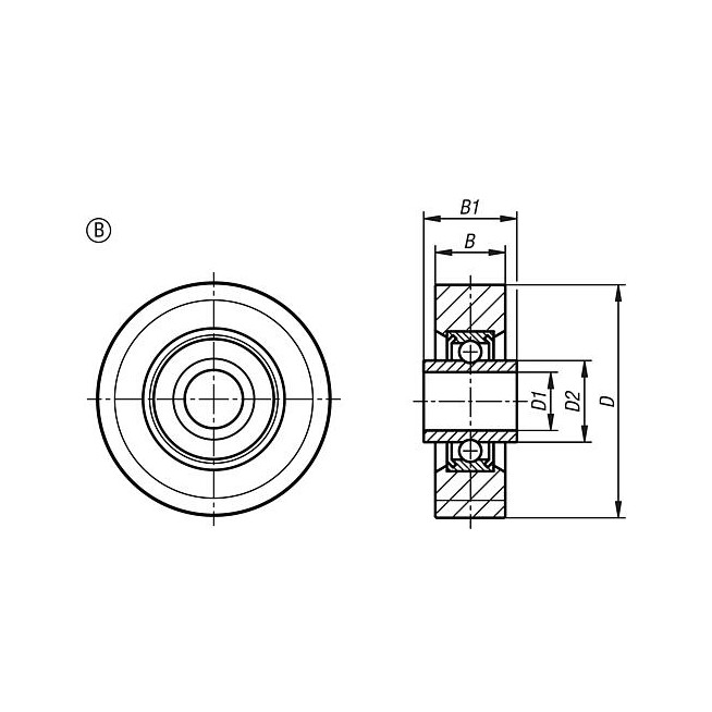 ROLKA TRANSPORTOWA CYLINDRYCZNY, Z LOZYSKIEM KULKOWYM, FORMA:B Z OBSADA, D=60, B=15, POLIURETAN DUNKELBRAUN,