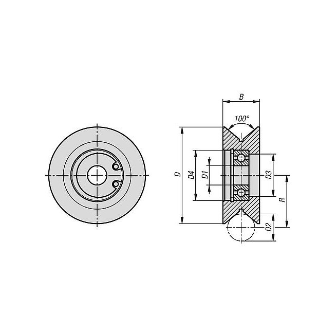 ROLKA TRANSPORTOWA M.EINSEITIGEM FLANSCH, Z LOZYSKIEM KULKOWYM, D=30, B=12, STAL NIKLOWANY, KOMP:STAL