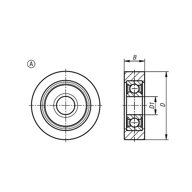ROLKA TRANSPORTOWA CYLINDRYCZNY, Z LOZYSKIEM KULKOWYM, FORMA:A OHNE BOLZEN, D=35, B=9, POLIACETAL BIALY,
