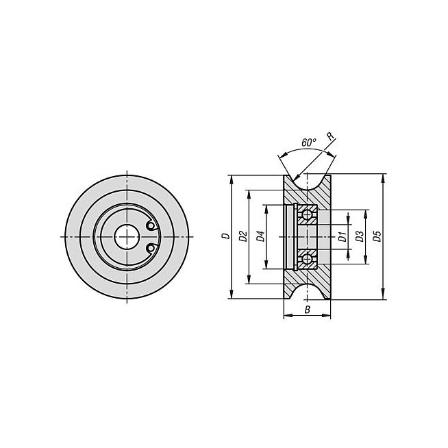 ROLKA TRANSPORTOWA KONKAV, Z LOZYSKIEM KULKOWYM, D=60, B=23, STAL NIKLOWANY, KOMP:STAL