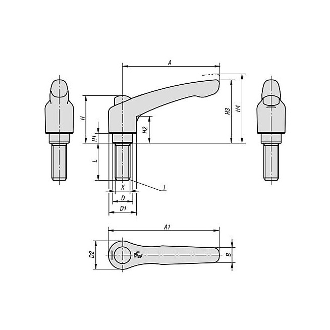 Rękojeści nastawne z gwintem zewnętrznym i kołpakiem ochronnym, części stalowe nierdzewne, matowe strukturalne - inch