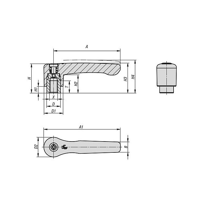 Rękojeści nastawne z cynkowego odlewu ciśnieniowego płaskie z gwintem wewnętrznym, wstawka gwintowa stalowa oksydowana - inch