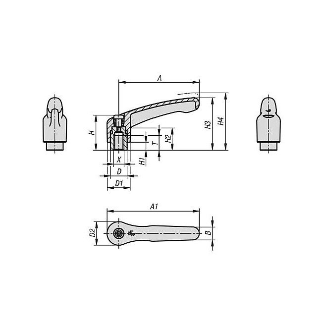 REKOJESC NASTAWNA RO.2, 1/4-20, TERMOPLAST PPA CIEMNOSZARY RAL7021, KOMP:STAL OKSYDOWANY