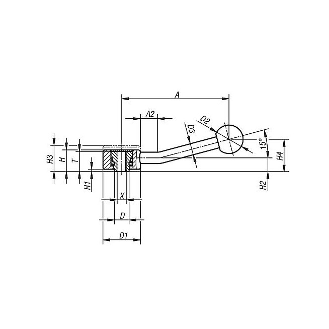 DZWIGNIA MOCUJACA GRZYBEK RO.1 5/16-18, A=100, FORMA:15°, STAL, KOMP:TWORZYWO SZTUCZNE