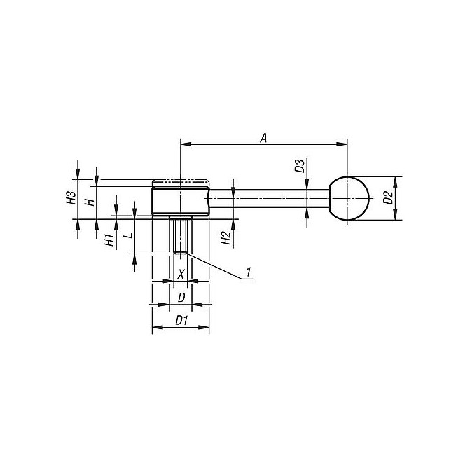 DZWIGNIA MOCUJACA GRZYBEK RO.3 1/2-13, A=148, FORMA:0°, STAL, KOMP:TWORZYWO SZTUCZNE