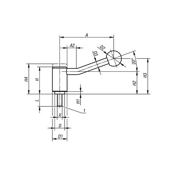 DZWIGNIA MOCUJACA RO.1 3/8-16X20, A=88, FORMA:20°, STAL POWLECZONY SZTUCZNYM, KOMP:TWORZYWO SZTUCZNE