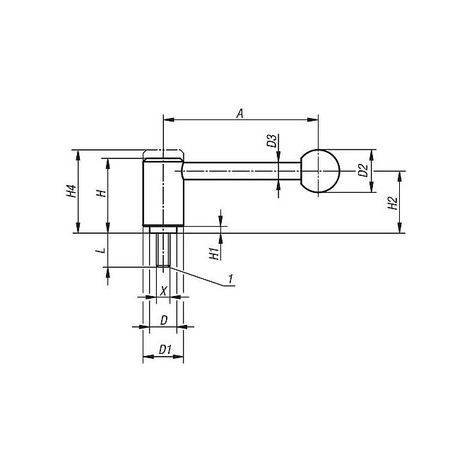 DZWIGNIA MOCUJACA RO.4 3/4-10X50, A=134, FORMA:0°, STAL POWLECZONY SZTUCZNYM, KOMP:TWORZYWO SZTUCZNE