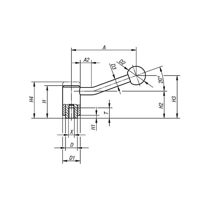 DZWIGNIA MOCUJACA RO.2 3/8-16, A=106, FORMA:20°, STAL POWLECZONY SZTUCZNYM, KOMP:TWORZYWO SZTUCZNE