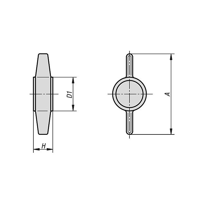 POKRETLO MOTYLKOWE H=10, A=38 TERMOPLAST, CZARNY, Z SZESCIOKATEM WEWNETRZ., DO=M08