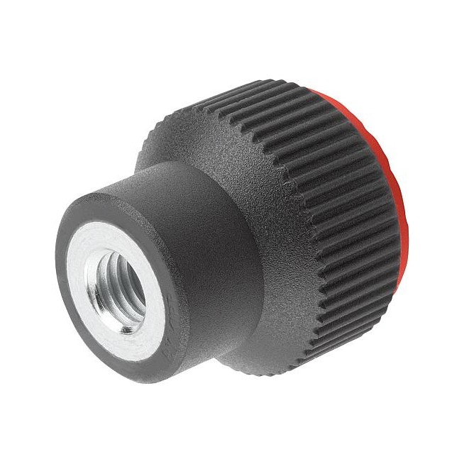 POKRETLO RADELKOWANE RO.1 D=1/4-20, D1=21, H=22, TERMOPLAST CIEMNOSZARY RAL7021, KOMP:STAL, POKRYWY:CZERWONY