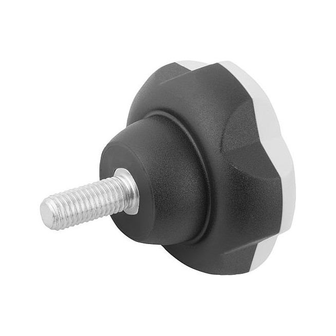 Pokrętła gwiaździste pięcioramienne z tworzywa sztucznego z pokrywą, wkładka gwintowana ze stali lub stali nierdzewnej - inch