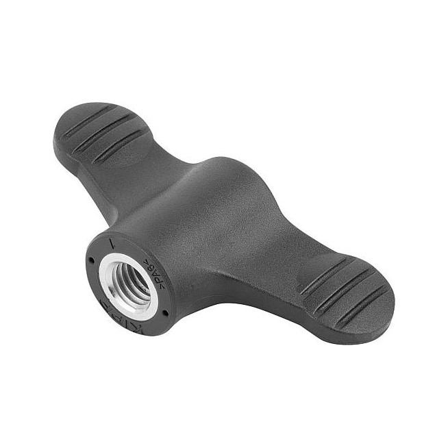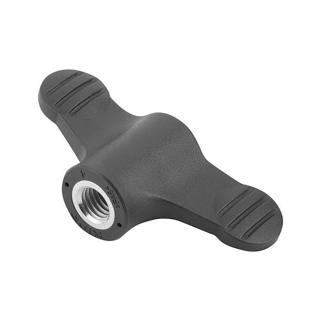 POKRETLO MOTYLKOWE D=1/4-20 A=38, H=18, FORMA:K Z GWINTEM WEWNĘTRZNYM, TERMOPLAST CIEMNOSZARY RAL7021,