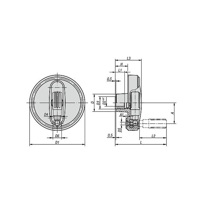KOLO RECZNE D1=125, OTWOR PASOWANY D2=0,5, RO.3, TERMOPLAST, KOMP:TERMOPLAST, RĘKOJEŚCIĄ SKŁADANĄ