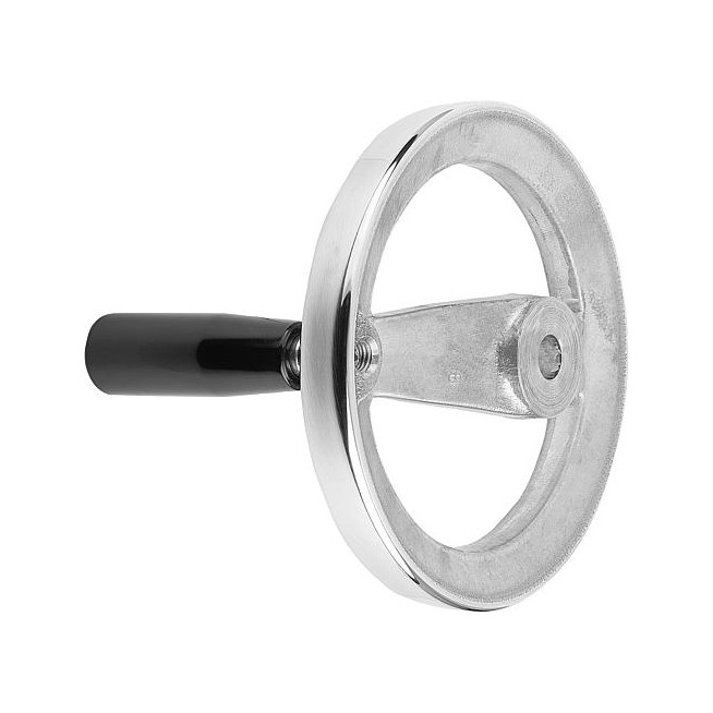 KOLO RECZNE 2-RAMIENNE D1=125 OTWOR PASOWANY D2=0,375, ALUMINIUM, KOMP:DUROPLAST, RĘKOJEŚCIĄ OBROTOWĄ