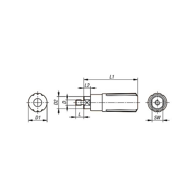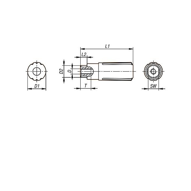 REKOJESC CYLINDRYCZNA OBROTOWY RO.1, FORMA:B Z GWINTEM WEWNĘTRZNYM D=8-32, L1=40, TERMOPLAST, KOMP:STAL