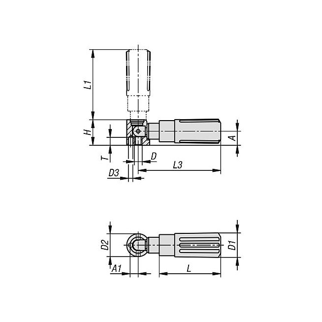 REKOJESC CYLINDRYCZNA OBROTOWY RO.3, FORMA:B Z GWINTEM WEWNĘTRZNYM D=1/4-20, L1=61,4, TERMOPLAST, KOMP:STAL
