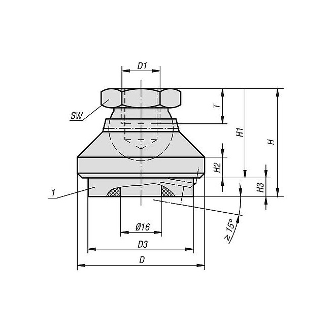 STOPKA DOCISKOWA D1=3/4-10 D=60, H=45, FORMA:G, STAL ULEPSZENIU CIEP., PODKLADKA ANTYPOSLIZGOWA, KOMP:STAL