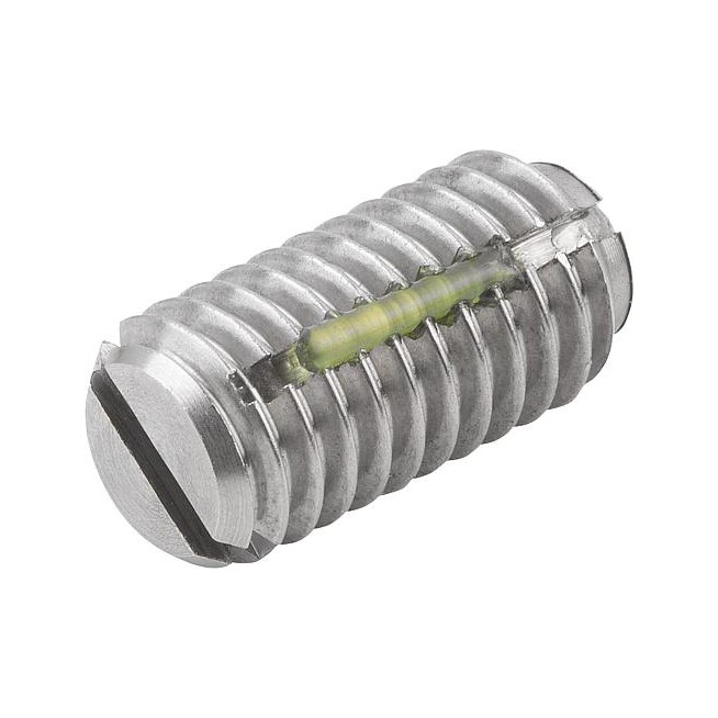 Zatrzaski kulkowe z nacięciem do wkrętaka, ze stali nierdzewnej, standardowa siła sprężyny, z zabezpieczeniem gwintu – inch