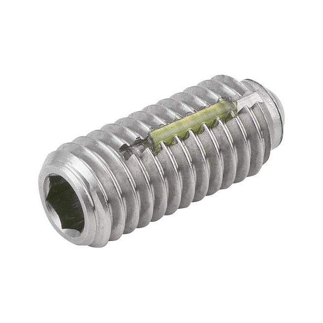 Zatrzaski kulkowe z gniazdem sześciokątnym, ze stali nierdzewnej, standardowa siła sprężyny, z zabezpieczeniem gwintu – inch
