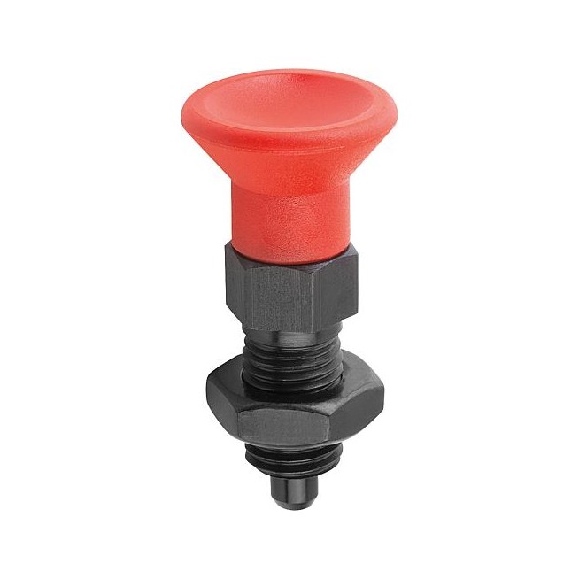 - Trzpienie ustalające ze stali lub stali nierdzewnej z uchwytem grzybkowym z tworzywa sztucznego i blokadą