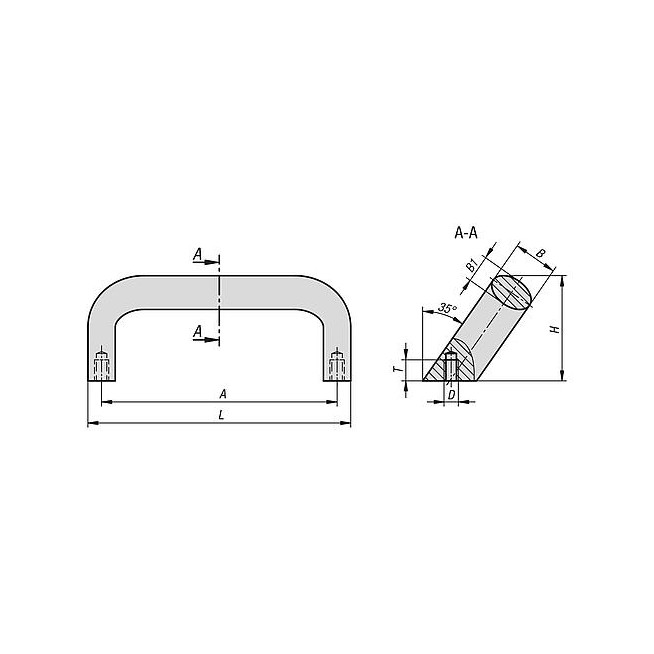 UCHWYT PALAKOWY OWALNY POCHYLONY, A=128, L=141, D=M06, STAL NIERDZEWNA Z POLYSKIEM 1.4308