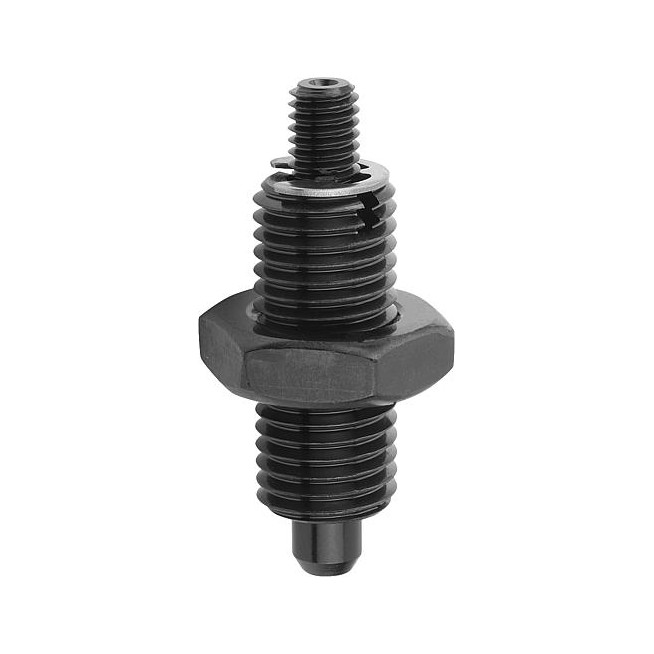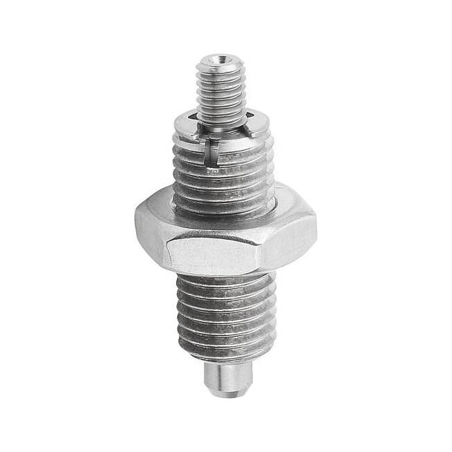 TRZPIEN USTALAJACY BEZ KOŁNIERZA RO.5 D1=1-8, D=16, FORMA:K, Z TRZPIENIEM GWINTOWANYM Z NAKRĘTKI ZABEZPIECZAJĄCĄ,