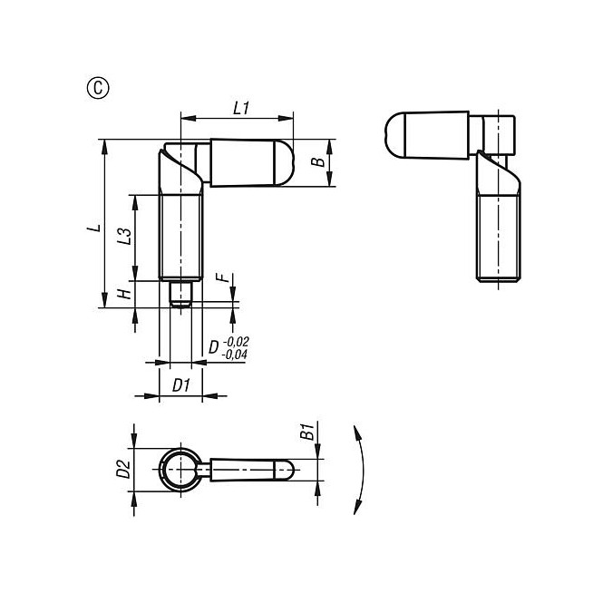 Rygle, forma C, z kapturkiem rygla, bez nakrętki - inch