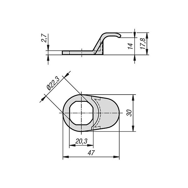 - Dociskacze krzywkowe pionowe z przylgą poziomą
