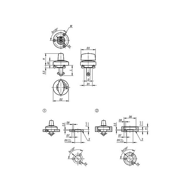 - Łącznik kulkowy stykowy Ø30 typ Iz zabezpieczeniem przed przekręceniem