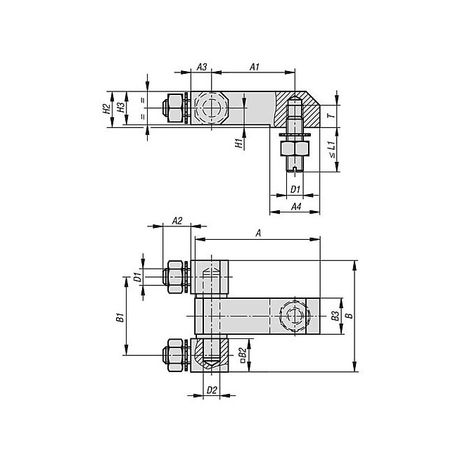 - Trzpienie montażowe z uchwytem L z cynkowego odlewu ciśnieniowego, o dużej wytrzymałości na ścinanie