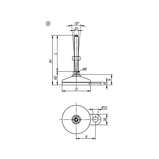 STOPKA, FORMA:B M20X200, D=80, STAL NIERDZEWNA 1.4301, KOMP:GUMA NIEBIESKI