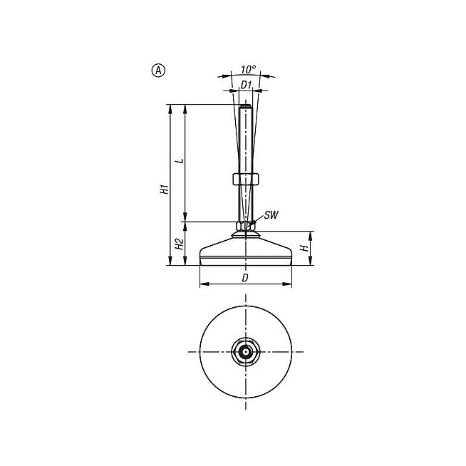 STOPKA, FORMA:A M16X200, D=100, STAL NIERDZEWNA 1.4301, KOMP:GUMA NIEBIESKI