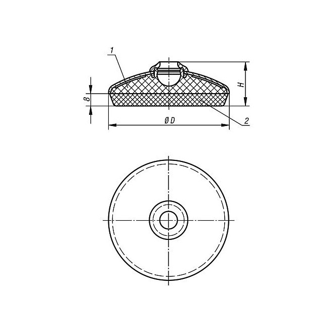 - Pokrętła motylkowe z tworzywa sztucznego z pokrywą, wkładka gwintowana ze stali lub stali nierdzewnej - inch