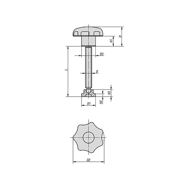 - Trzpienie ustalające stalowe z pokrętłem gwiaździstym pięcioramiennym z tworzywa sztucznego - inch