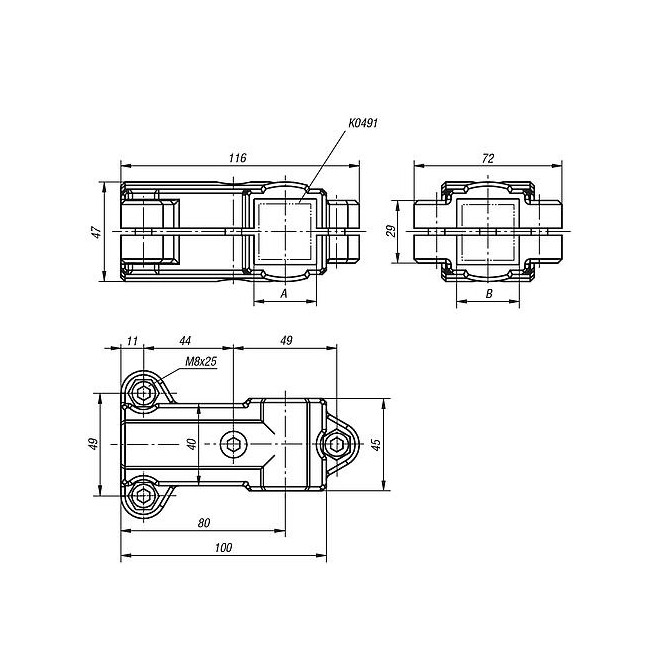 ZLACZKA ZACISKOWA ZLACZKA T ALUMINIUM, DO RUR KWADRATOWYCH, KOMP:STAL, A=40,4, B=40,4