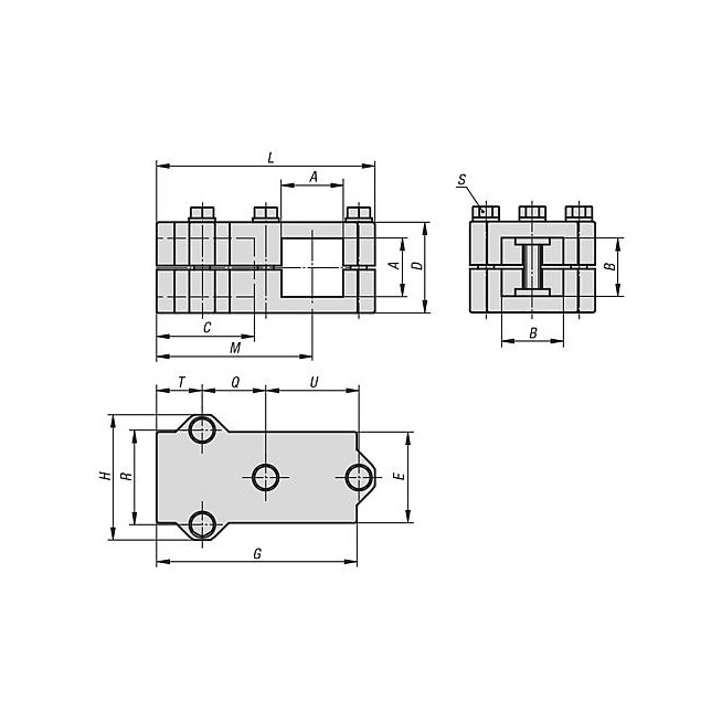 ZLACZKA ZACISKOWA ZLACZKA T ALUMINIUM, DO RUR KWADRATOWYCH, KOMP:STAL, A=30,3, B=30,3