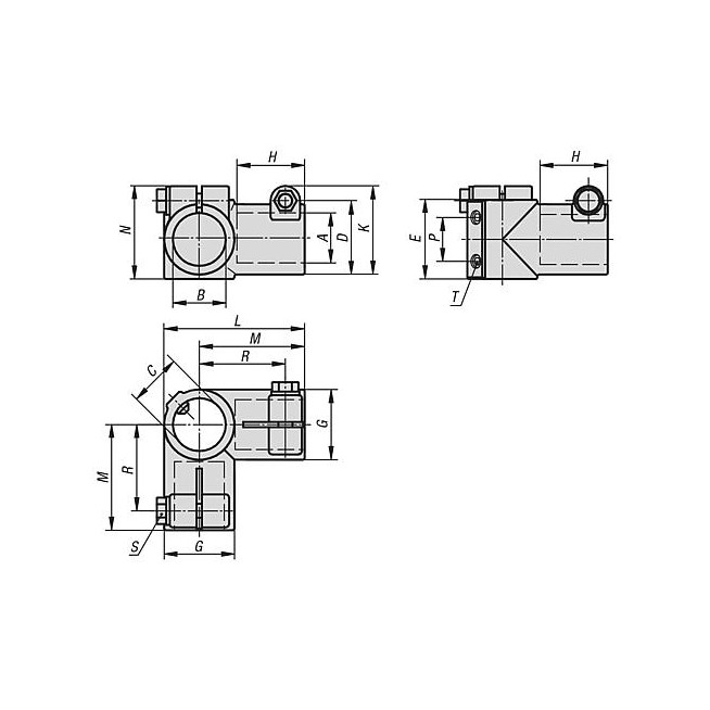 ZLACZKA ZACISKOWA ZE STOPKA, DO RUR OKRAGLYCH, M=90, G=90, L=70, A=40,17, FORMA:B, ALUMINIUM, KOMP:STAL