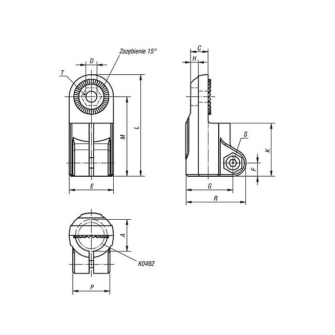 - Łącznik kulkowy krzyżowy Ø30 typ Iz zabezpieczeniem przed przekręceniem