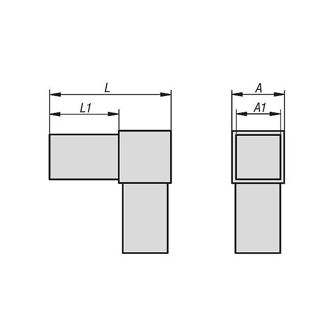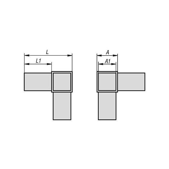 - Łączniki wtykowe (rura czworokątna) kątownik z odgałęzieniem
