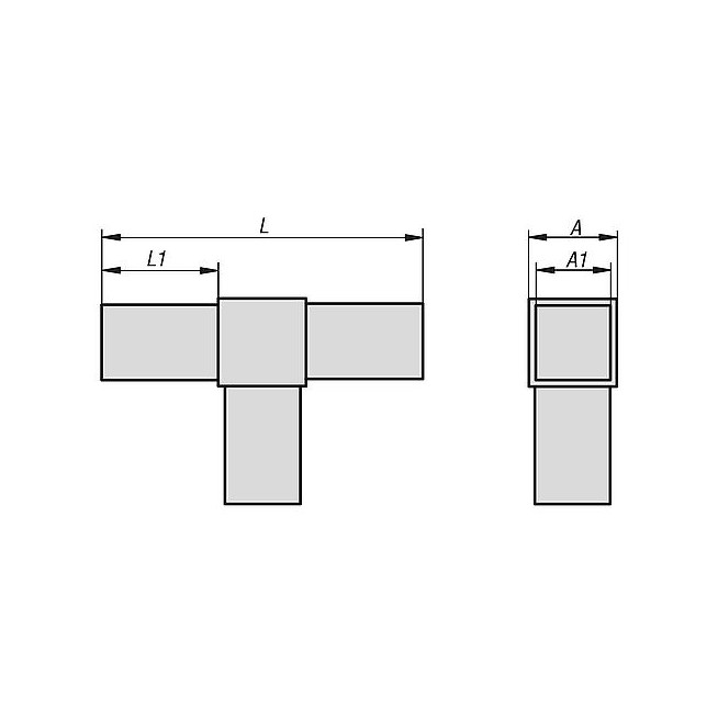 - Łączniki wtykowe (rura czworokątna) złączka T z odgałęzieniem