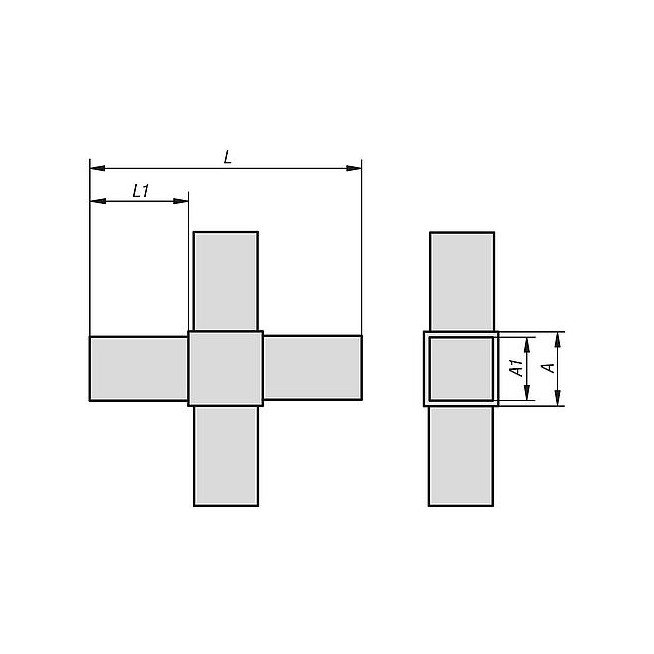 - Łączniki wtykowe (rura czworokątna) krzyżowy z odgałęzieniem